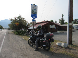 Done with the Yaak we check the internet to see if the road to Glacier NP is still closed...it is. Darn it! So we ride into Canada a ways to get some lunch. Bev samples a Canada original, Poutine.